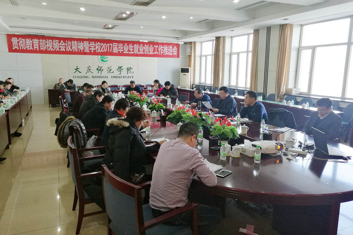 张国军副校长就如何贯彻落实教育部、省教育厅视频会议做了强调和要求。一是实事求是,客观认识毕业生就业创业工作中存在的问题。分析了我校在课程设置方面与市场还有脱轨,就业指导服务还需完善,毕业生就业观念亟需转变等等;二是与时俱进,真抓实干,促进毕业生就业创业工作。要求各学院深入实施“一把手”工程,党政主要领导要形成合力。要求教学部门深化教育教学改革,创新人才培养方案,全面推进创新创业教育和学生自主创业工作。要求职能部门与二级学院将开发就业市场工作持续化、常态化,并牢牢抓住省内就业市场,为我省新一轮经济发展提供优秀的毕业生。