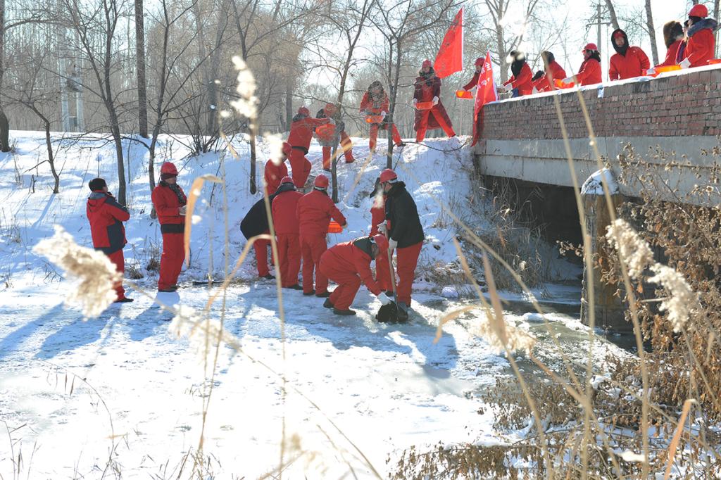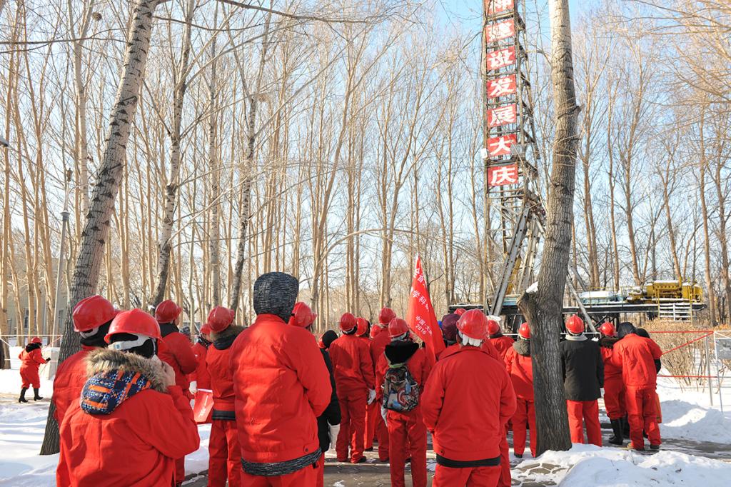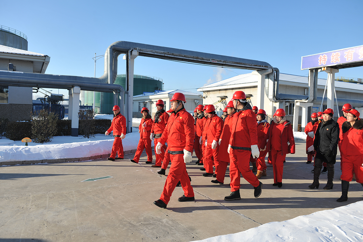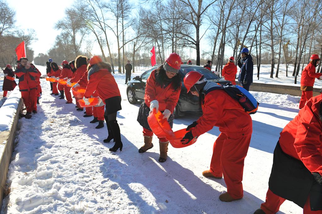 为切身体验老一辈石油人“有条件要上,没有条件创造条件也要上”的艰苦创业精神,学员们分成两组,在拓展训练师李晓全教授带领下开始了限时破冰端水竞赛,用体验式教学的方法让学员们体验当年的创业艰辛。学员们冒着严寒用镐破冰,用水桶、脸盆端水,感受先辈们“没有条件创造条件”的干劲和智慧。