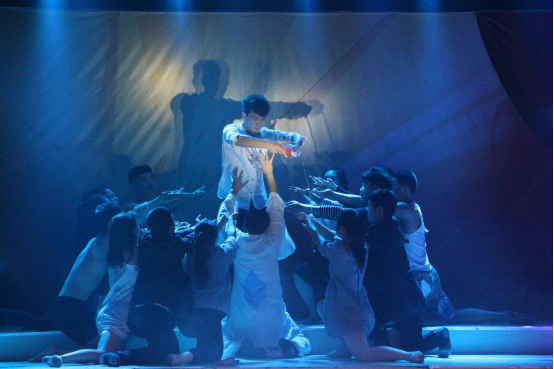 在演出中,舞蹈系的学生们用肢体和情绪呼吁人们要保护好我们生活的环境,节约每一滴水。整场演出故事情节贴近现实,剧情生动,跌宕起伏。