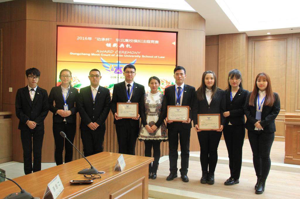 由吉林大学法学院主办、吉林功承律师事务所和荷兰威科集团赞助并协办的“功承杯”第三届东北高校模拟法庭竞赛于11月12日在吉林省长春市点燃战火。我校法学院代表队在24支参赛队伍中成功入围,晋级八强,取得优异成绩。
