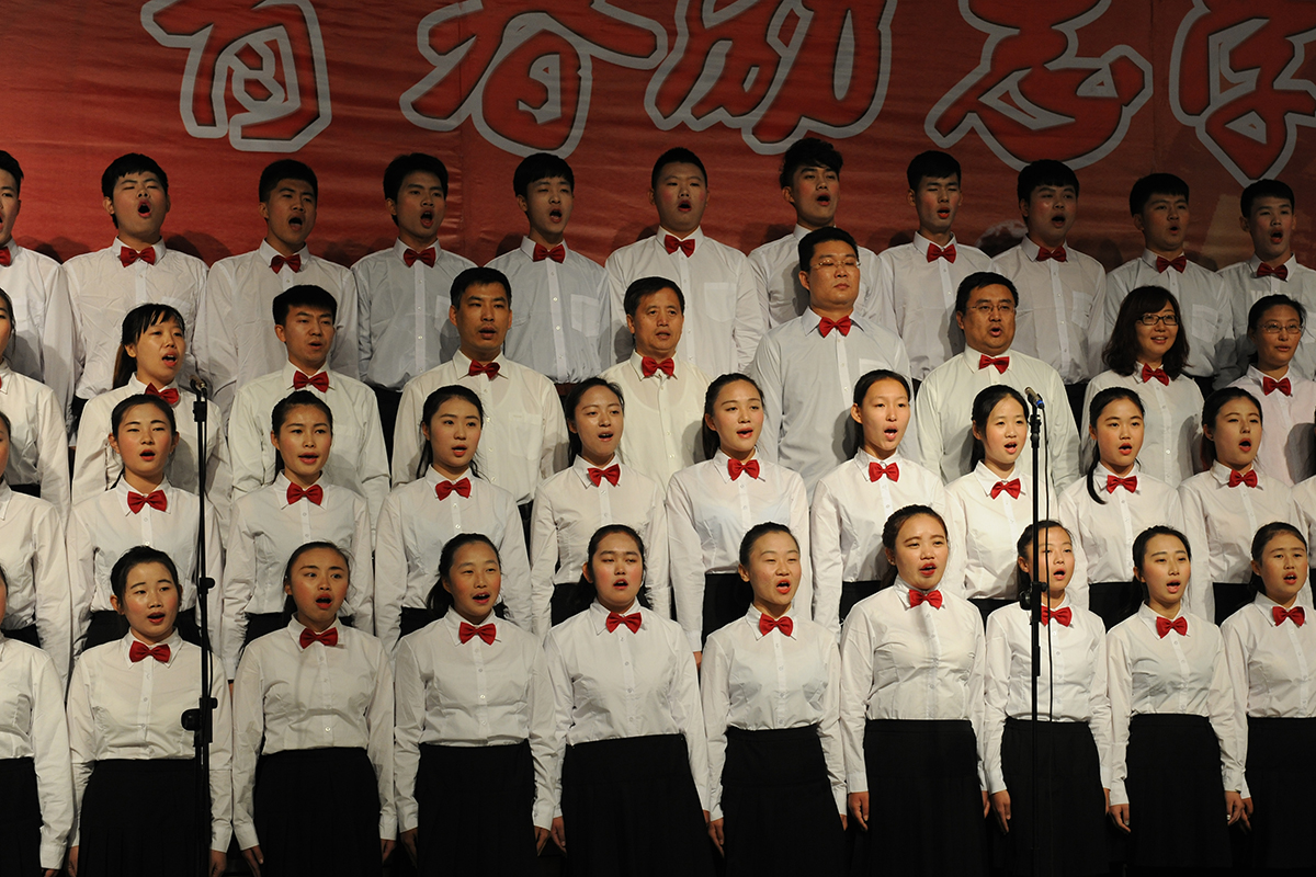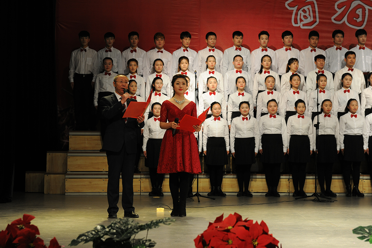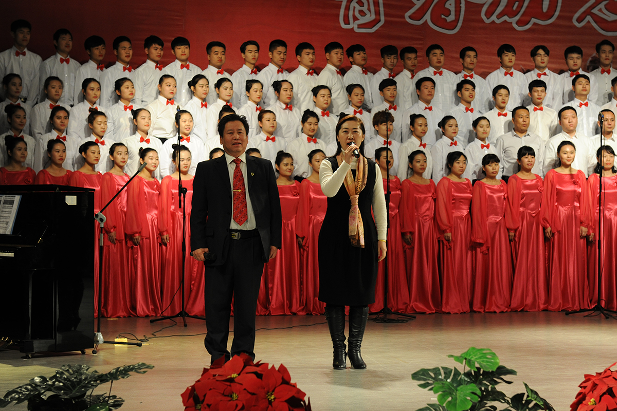 校“春之声”声乐俱乐部老师们声情并茂演唱的《大庆啊大庆》《你是铁人》,再次把演出推向了高潮,全体观众起立鼓掌向演员们致敬。