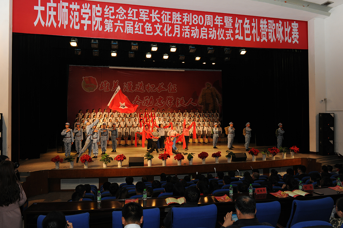 长征,是中国共产党领导中国工农红军完成的震惊世界的伟大壮举。长征的胜利,开辟了中国革命继往开来的光明道路,奠定了中国革命胜利前进的重要基础。今年是中国工农红军长征胜利80周年,为纪念红军长征这一伟大历史事件,10月12日下午,由党委学生工作部、团委主办的“纪念红军长征胜利80周年暨第六届红色文化月活动启动仪式·红色礼赞歌咏比赛”在大学生活动中心隆重举行。党委副书记刘恒、副校长张国军以及机关部门、教辅单位的领导和各二级院党政领导出席了开幕式。