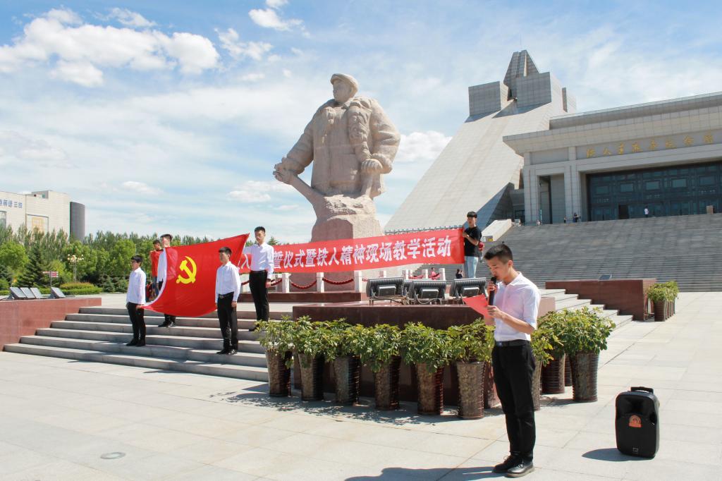 在建党96周年来临之际,为加强预备党员的教育管理,2017年6月7日下午,党委组织部在铁人纪念馆举行新党员入党宣誓仪式暨铁人精神现场教学活动。学校兼职党委组织员高玉芝同志以及125名新党员参加了此次活动。活动由组织建设科科长刘彰基主持。