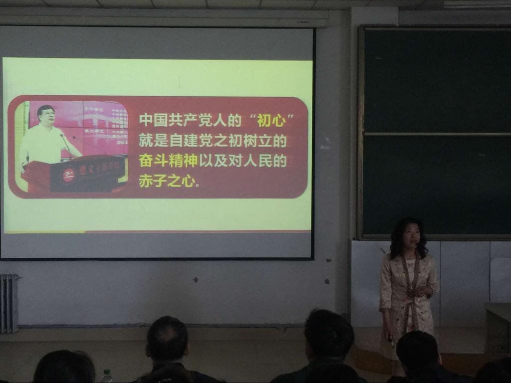 为扎实推进“两学一做”学习教育常态化制度化,把党员通过“两学一做”学习教育激发出的政治热情内化为勤勉敬业的自觉,外化为立德树人的行动,进一步强化党员理想信念教育,提高基层党建工作水平,5月3日到5月11日,党委组织部邀请党校兼职教师、思想政治理论课教研部赵桂英、王彦玲、马吉芬、郭元阳四位老师深入基层开展党课送讲,为全校教工党员做“固信念强党性,转型发展做贡献”系列专题党课。