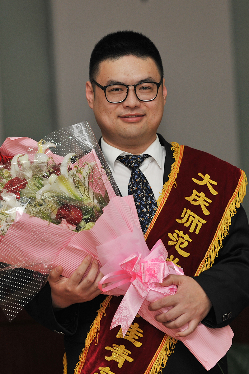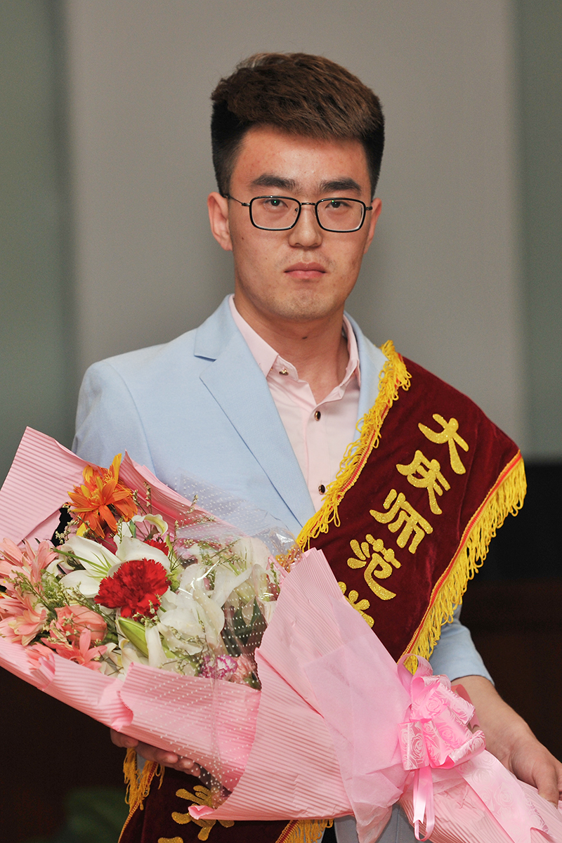 十佳青年——音乐与舞蹈学院教师 陈毓博 边疆彩霞的余晖映照在你刚毅的面庞,守候在辽阔的沙漠,你就是挺拔的胡杨。音乐汇成的爱河,流向了边疆孩子稚嫩的心田。 |