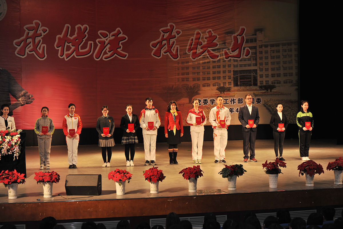 颁奖典礼上,阅读经典导师和学生为读书月活动中荣获“十佳读书之星”、“十佳书香寝室”、“十佳书香班级”、“优秀组织奖”和“我最喜爱的老师”等奖项的获奖单位和个人颁奖。