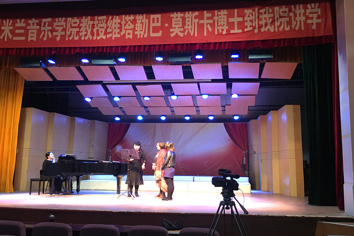 4月21日,受我校国际交流合作处和音乐与舞蹈学院邀请,意大利米兰威尔第音乐学院声乐教授维塔勒巴·奥斯卡到我校音乐与舞蹈学院进行为期一天讲学活动。
