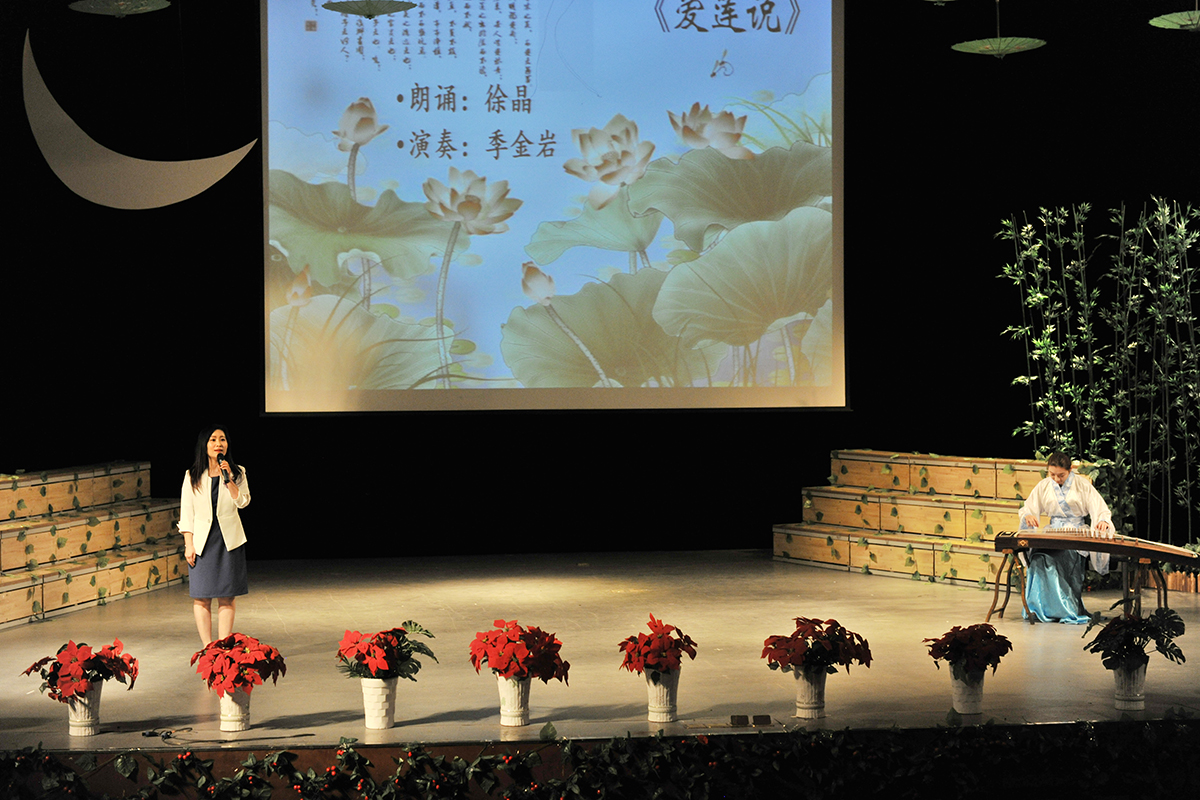 整个比赛过程紧张激烈,又不失趣味性。嘉宾顾问原昊和陈英立老师对选手的精彩点评和对诗词的拓展解析,贯穿于比赛各个环节。文学院院长助理、汉语国际教育系主任徐晶和文学院教师任金凤,还分别带来朗诵表演《爱莲说》和《一剪梅》,为比赛锦上添花,将现场古典雅韵的氛围推向高潮。
