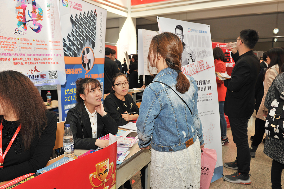 一是将用人单位精细分类定位展区,深度优化参展单位,便于学生寻求适合自己的岗位;二是参会单位质量有所提高,一些央企、上市公司、全日制私立学校参会招聘;三是省外企业数量有所提升,共有50家省外知名企业参会,占招聘单位总数的23%;四是参会企业更新较多,共有86家企业为新开发企业,更新幅度占40%。