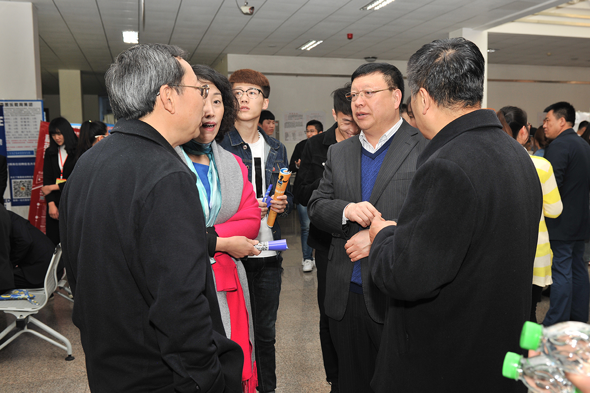 2017年4月19日,2017届毕业生春季大型供需洽谈会在我校图书馆举行。学校主管领导亲临现场,部分学院书记、院长、教研室主任主动与用人单位沟通,了解企业用工需求,为毕业生现场指导。