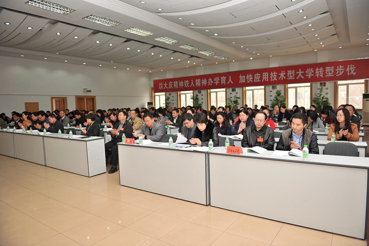 徐克明校长在报告中回顾了2016年的工作。他说,2016年是“十三五”的开局之年,一年来,全校上下围绕建设特色应用型本科高校,狠抓内涵建设,推进转型发展,各项工作稳中有进,实现了“十三五”良好开局。学校转型发展迈出坚实步伐;教学基本建设持续加强;教师科研能力与队伍建设水平不断提升;人才培养质量不断提高;开放办学与社会服务稳步拓展;内部管理改革与和谐校园建设持续推进;铁人精神育人实践持续深化;党建和思想政治工作不断加强。