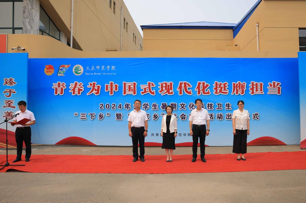7月11日,学校2024年大学生暑期文化科技卫生“三下乡”暨“返家乡”社会实践活动出征仪式在五四青年广场举行。校党委副书记刘迪,校党委委员、宣传统战部部长郭春满,学生工作部部长葛焱东,大庆精神研究院院长邓雨巍,二级学院团委负责人及学生代表参加。出征仪式由团委副书记刘彰基主持。