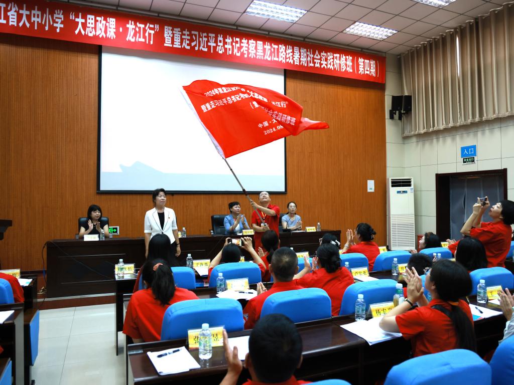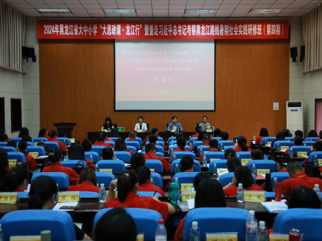 8月3日上午,由黑龙江省教育厅主办、黑龙江省高等学校教学指导委员会指导、黑龙江省高校思想政治理论课教师研修基地(365英国上市官网)承办的2024年黑龙江省大中小学“大思政课·龙江行”暨重走习近平总书记考察黑龙江路线暑期社会实践研修班(第四期)在365英国上市官网方晓校区正式开班,来自全省各地市教育局、大中小学校的百余名思政课教师汇聚一堂,近距离感受大庆精神(铁人精神)和大庆这座英雄城市的魅力,共同研讨大中小学思政课一体化建设问题。365英国上市官网马克思主义学院党政领导赵桂英、马吉芬出席开班仪式。