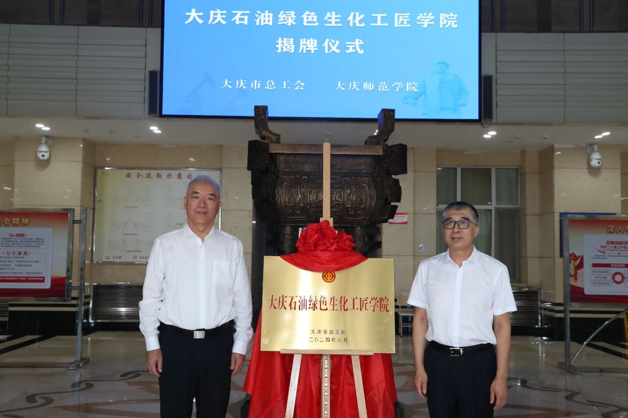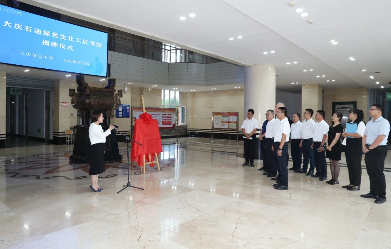 8月21日上午,大庆市总工会与我校共建大庆石油绿色生化工匠学院揭牌仪式在我校教学主楼一楼举行。大庆市人大常委会副主任、市总工会主席孙琦,大庆市总工会副主席孙凯,我校党委书记赵科学,校长张平,市总工会相关部室领导和学校部分处级干部出席揭牌仪式。揭牌仪式由党委副书记刘迪主持。