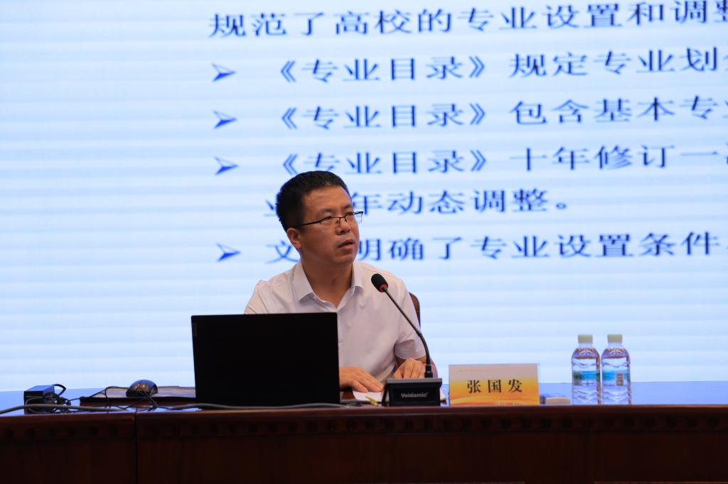 教务处处长张国发、科研处副处长陈立勇、教师教育学院副院长张晓梅,分别围绕加强专业建设、推进科研成果落地转化、做好二级学院定位与管理等作了报告。