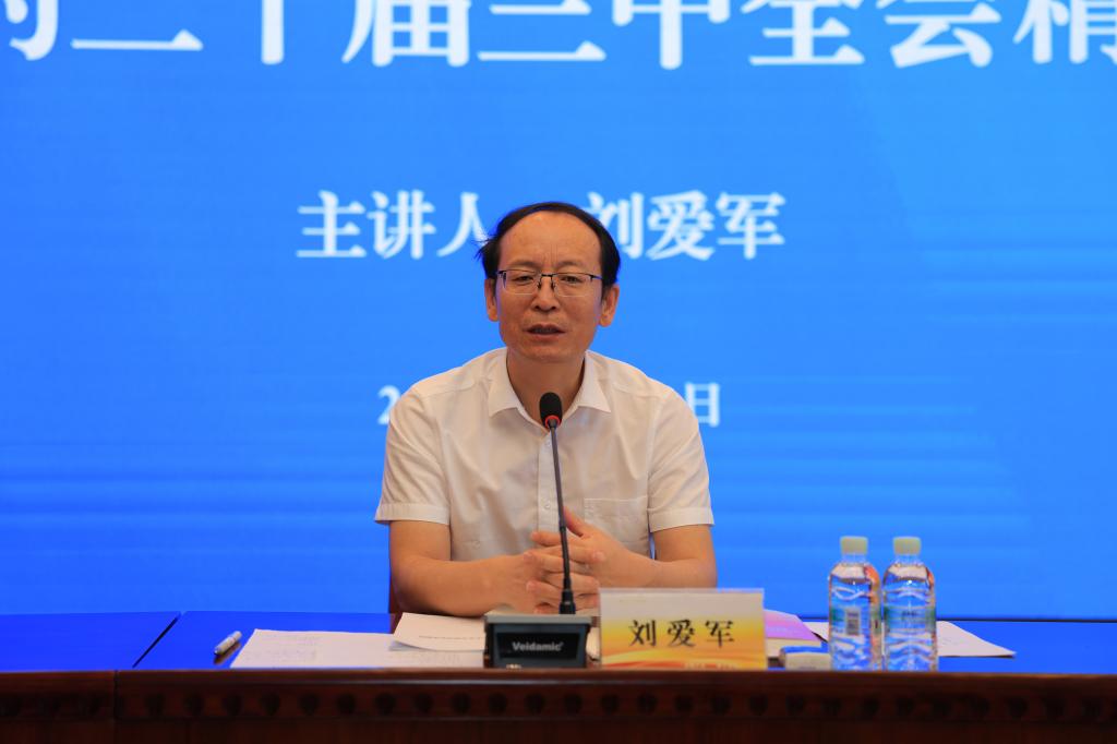 省委宣讲团成员、哈尔滨师范大学马克思主义学院副院长刘爱军作了党的二十届三中全会精神宣讲报告。报告围绕深入学习领会习近平总书记在党的二十届三中全会上的重要讲话精神、全面准确理解《决定》提出的进一步全面深化改革重大举措、深入把握省委贯彻落实三中全会精神的主要安排和以钉钉子精神全力抓好改革任务落实等四个方面内容,对党的二十届三中全会精神作了系统阐释和深入解读。