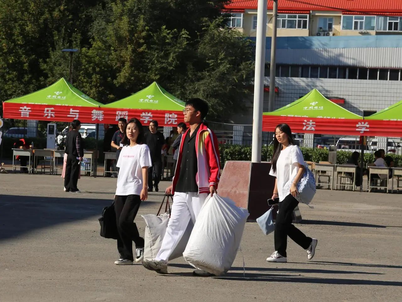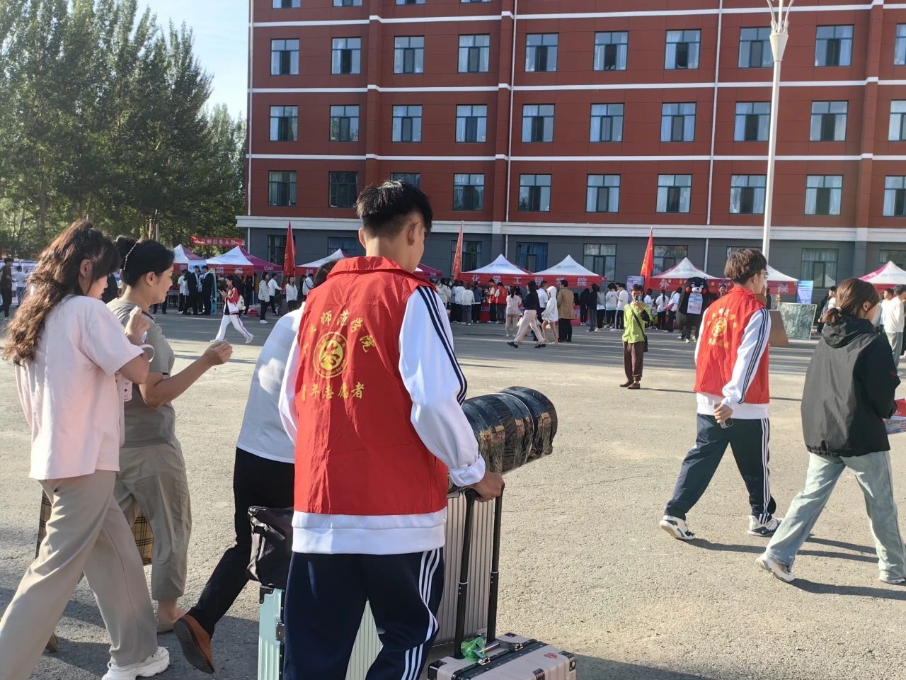 负责迎新的老师们耐心为新生答疑解惑,妥善安排各项工作。学生志愿者成为校园里一道亮丽的风景线。他们耐心细致、热情周到,穿梭在校园各处,协助新生办理报到手续、帮助新生搬运行李、为新生介绍校园环境、指引路线、疏导交通等,让新生们更快地融入新的环境。