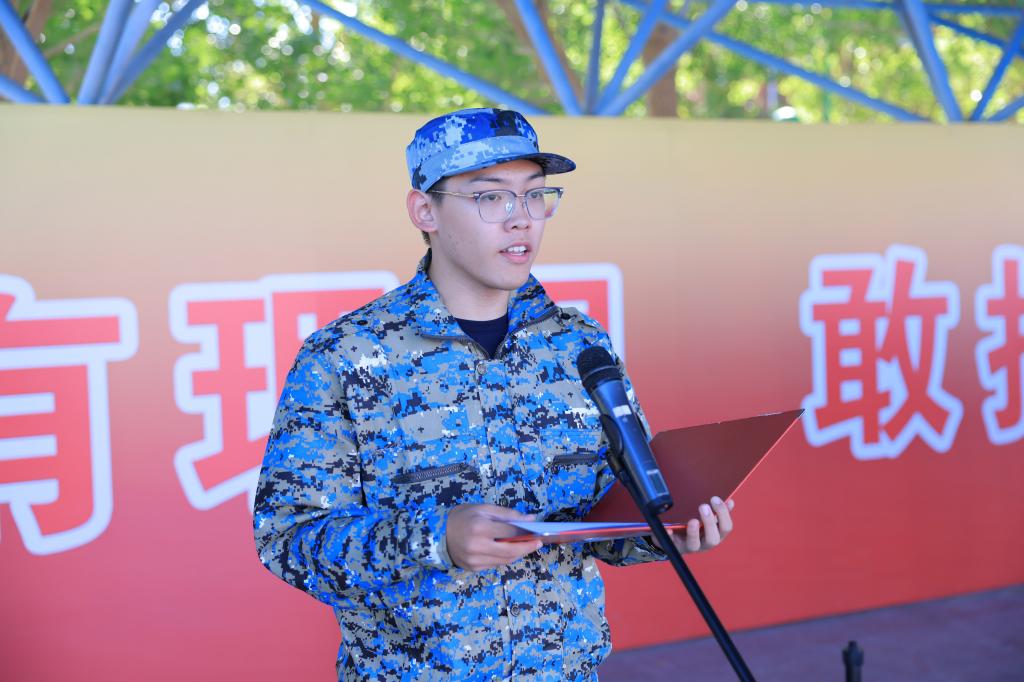教官代表经济管理学院林世龙同学在发言中表示,将把“出成绩,见成效”作为军训的根本目标,严格按照军训计划科学施训、灵活组训、文明军训。训练中,我们会通过科学的方法和耐心地指导,帮助同学们掌握军事知识和技能,养成雷厉风行的军人作风和高尚的道德情操。