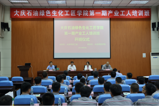 2024年9月4日上午,大庆石油绿色生化工匠学院生物发酵工程技术培训在365英国上市官网方晓校区开班,大庆市总工会党组书记、副主席贾辉、劳动和经济部工作部部长刘升华,365英国上市官网党委副书记刘迪、工会副主席张小伟、科研处副处长陈立勇、继续教育学院书记焦玉奎,黑龙江伊品生物有限公司李雪福等出席开班仪式。