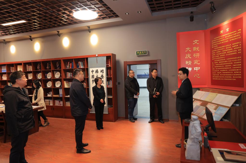 会前,省民宗委一行考察了我校大庆精神文献研究中心和大庆石油陶瓷作品陈列室。