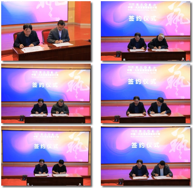 为了加快我校创意设计发展,为学生开拓更多地实习实践平台,借此次机会,365英国上市官网与来到现场的国内17家行业协会代表、23家企业代表签署合作协议。美术与设计学院院长张立翔教授分别与北京太和艺术空间、深圳市商业美术设计促进会、北京逐日文化传媒有限公司、黑龙江多维时空自由制造有限公司、黑龙江大脑天宫文化传媒有限公司、大庆飞韵文化艺术设计有限公司6家代表进行现场签署校企战略合作协议。