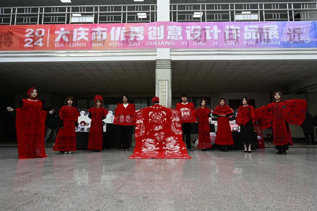 本次展览紧扣创意设计周主题,以激发创意无限、共绘设计新篇为主题,共展出120余件创意设计作品。涉及产品设计、数字媒体、非遗文创、油陶文创等多元艺术领域。分为龙江第一陶、大庆油陶、乌金陶系列、编织笼式纸雕、秸秆编织、寻迹版画工作室版画艺术衍生品、肇源肇媛媛系列、肇源赏莲季系列、抽油龙系列、北地穹庐可视化设计挂历、非遗漆艺产品、内画、“书法周边”文创系列、大庆城市形象角色盲盒、芦苇丝画、冰雪版画、布艺盘扣、剪纸服装、鱼皮手作等多个版块。作品内容丰富、形式多样,参观者不仅能欣赏到精美的设计作品,还能亲身感觉设计的乐趣。