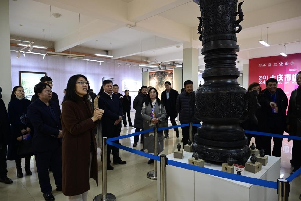 清华大学美术学院林华教授、北京太和艺术空间贾廷峰先生,哈尔滨师范大学美术学院设计学科带头人张红松教授先后发言,他们对大庆市创意设计作品在主题呈现、设计风格指向、意趣营造等方面给予积极肯定,同时对作品的制作工艺、创意深化、产业化拓展等方面,提出了建设性意见,鼓励美术与设计学院师生和大庆的创意设计企业,大胆构思,创新引领,不断推动大庆市创意设计的新局面。