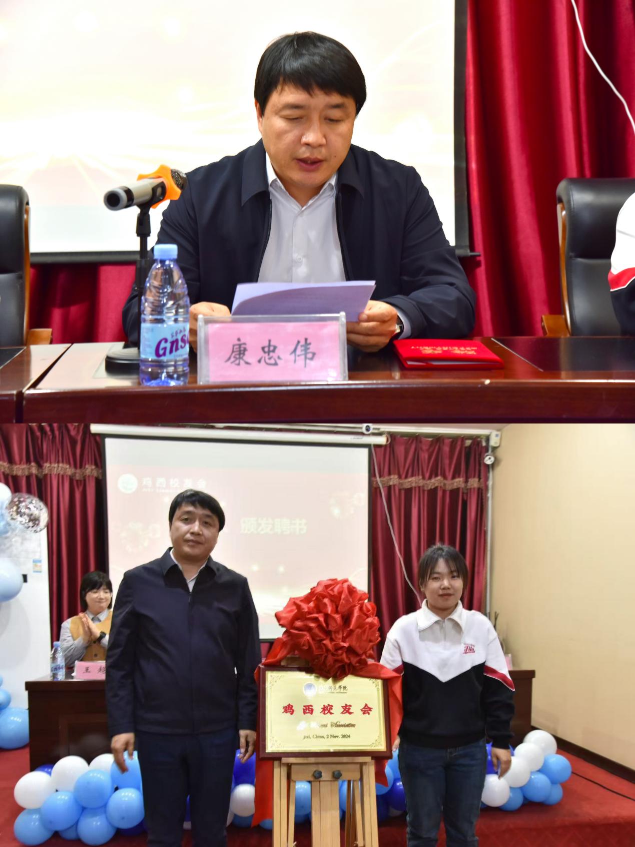11月2日,学校鸡西校友会成立大会在鸡西市顺利举行,副校长康忠伟、原党委副书记徐晓东莅临现场并致辞。鸡西市校友代表、化学工程学院、生物工程学院主要负责人以及招生就业处相关人员参加大会。