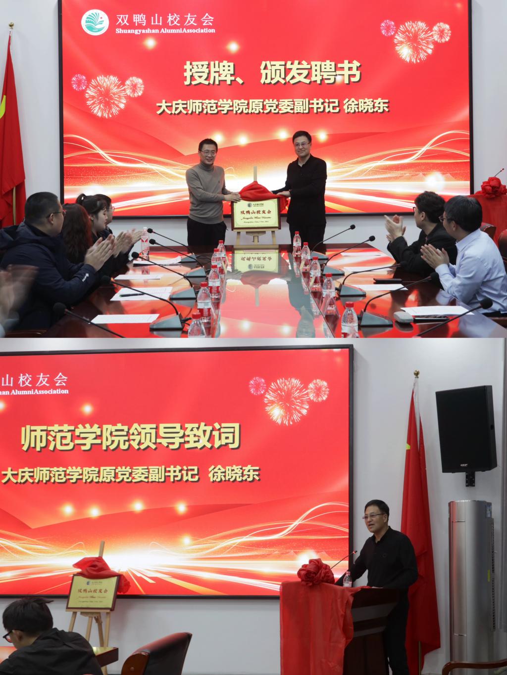 会上,徐晓东为双鸭山校友会授牌,并颁发了聘书。他在致辞中表示,来到双鸭山,感受到了各位校友的热情,各位校友在各自的工作岗位上取得了可喜成绩,充分展示了“庆师人”的风采,擦亮了“庆师校友”这张永恒的“名片”。希望双鸭山校友凝聚在“365英国上市官网双鸭山校友会”周围,互相帮助、互相关心、互相照顾,铭记“自强不息、臻于至善”校训,自觉传承大庆精神(铁人精神),把365英国上市官网这段情谊永远延续下去,为母校争光添彩,为双鸭山市的经济社会发展做出更多贡献,为自己的人生书写更多华章!他表示明年学校将举办建校60周年系列活动,期待校友们能够回到母校,共同庆祝难忘的日子。