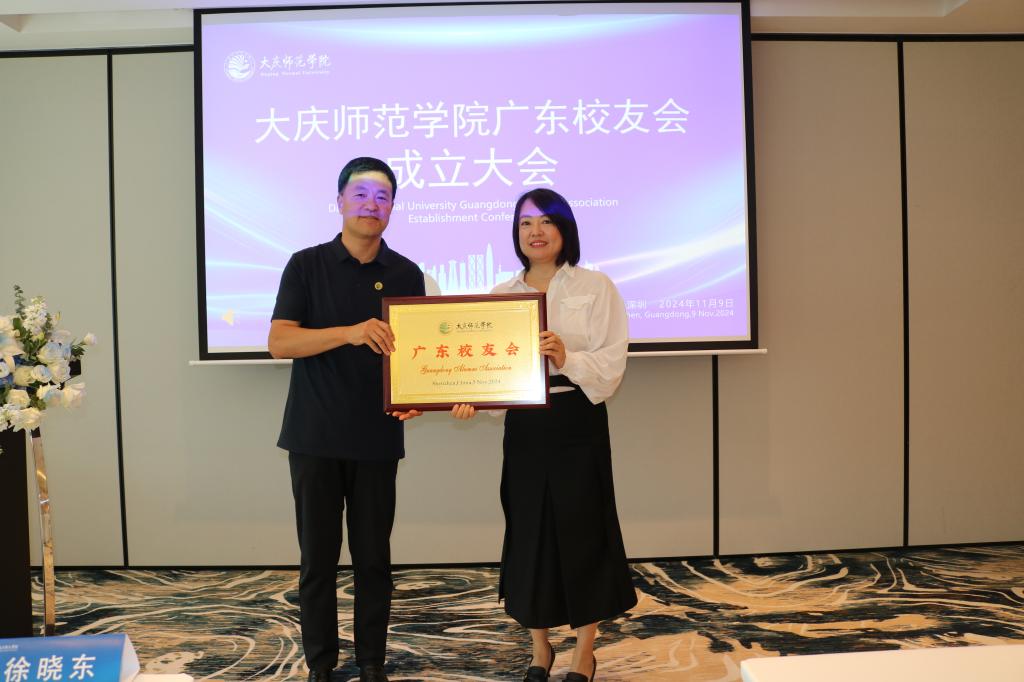 徐晓东代表学校对校友们为广东校友会成立付出的辛勤努力表示问候和感谢。他向在场校友通报了学校发展近况并表示:在喜迎庆师即将建校60周年之际成立广东校友会,正当其时、意义重大。广东是改革开放的排头兵、先行地、实验区,庆师学子在南粤大地立足不同岗位、深耕奉献,向外展现出亮眼的庆师名片。希望广东校友会成为校友间共享信息、交流经验、协作帮扶、共同发展的重要平台,积极发挥校友与母校的桥梁纽带作用,为母校的发展献计献策献力,推动母校又好又快发展。希望校友会成为校友们叙友情、话相知、促交流、谋发展的广阔平台,助力母校与校友发展共赢。
