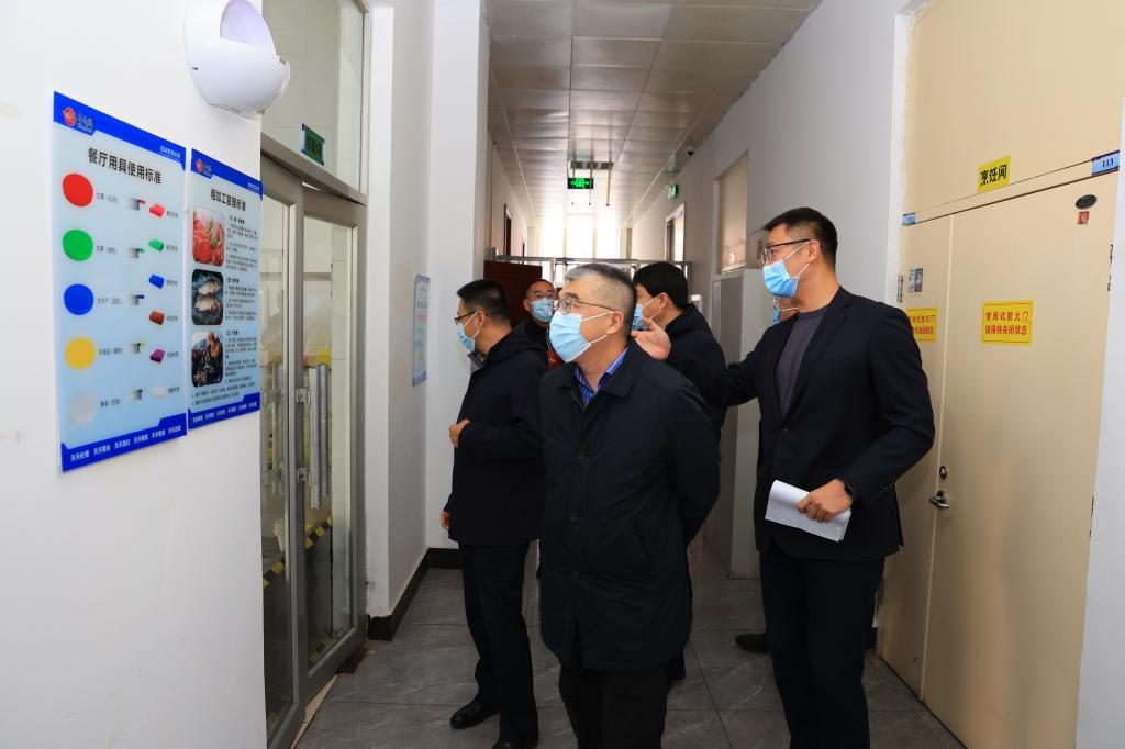 赵科学一行人先后检查走访了学生一、二食堂以及已竣工的三食堂,在现场认真听取了食堂供餐工作的详细汇报,深入了解食品原料采购、饭菜价格及菜品质量、餐饮器具消毒、食堂用电、燃气安全以及三食堂运营方案等,并实地查看了食品原材料库房、操作间、洗消间、学生用餐区域等卫生及管理情况,仔细检查了食品留样柜、食品安全工作记录台账等。