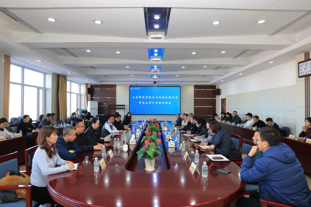 2024年12月4日下午,我校与让胡路区教育局组织召开了“常态化实习实践协同会”。会议旨在进一步优化师范生实习实训工作,探讨校际合作新模式,提升教育实习质效。让胡路区教育局副局长钟海涛,区属各基础教育学校校长、园长及教学负责人30余人,与我校校长张平、教务处及各二级学院相关负责人齐聚一堂。会议由教务处长张国发主持。