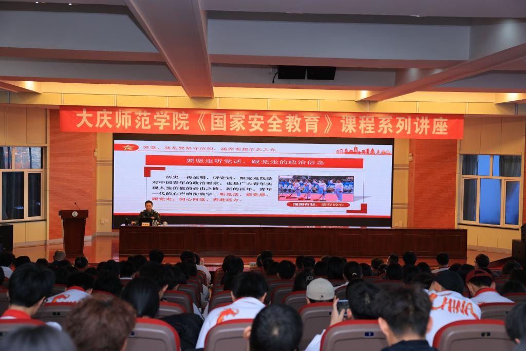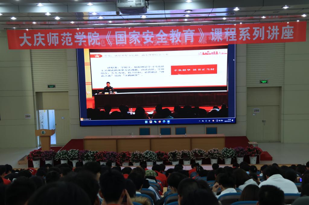 为提高大学生国防、军事安全意识,培养学生树立爱党、爱国、爱军之志,2024年12月11日,学校邀请大庆市委常委、军分区司令员周春胜来我校作《国家安全教育》课程专题讲座。学校党委书记赵科学,党委副书记滕强,党委副书记、工会主席刘迪,副校长周丹,纪委书记曲贵海、大庆军分区政工处副主任兰海宁和教务处相关人员参加会议,会议采取线上同步直播的方式进行,主报告在博雅讲堂进行,同步22个主楼教室分会场共计3000余名2024级学生在线观看。