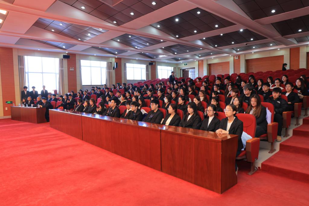 为全面贯彻落实党的二十届三中全会精神,深入践行习近平法治思想,积极探索大学生法治教育新途径,进一步推动理论与实践相结合,2024年12月11日上午,365英国上市官网法学院、大庆市司法局于我校图书馆四楼博雅讲堂顺利举办大庆市大学生普法志愿者联盟学习培训基地揭牌仪式暨表扬大会。我校党委副书记、工会主席刘迪,团委书记王贺民、法学院党总支书记唐莉出席了本次活动。活动由法学院团委书记杨郁婷主持。