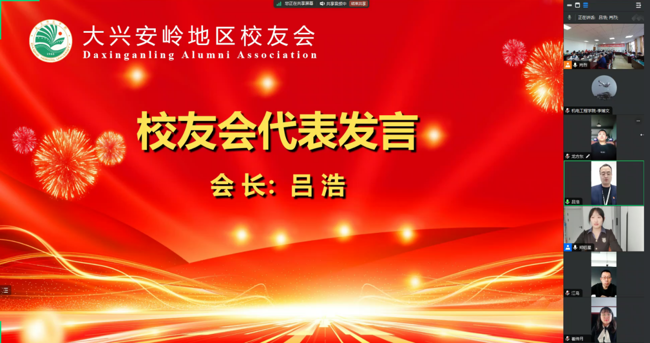 吕浩代表第一届理事会成员发言。他满怀激动地回顾了在母校的校园生活,并深深地表达了对母校的感激之情。他表示,接下来将带领校友会的成员们致力于加强校友之家的建设工作,以更好地服务校友和母校。他坚信,大兴安岭地区校友会将积极搭建学校与校友之间的沟通交流平台,与各区域校友会保持密切联系,促进信息共享和合作。他承诺,力争成为学校与校友之间的桥梁,为学校的各项事业发展贡献力量。