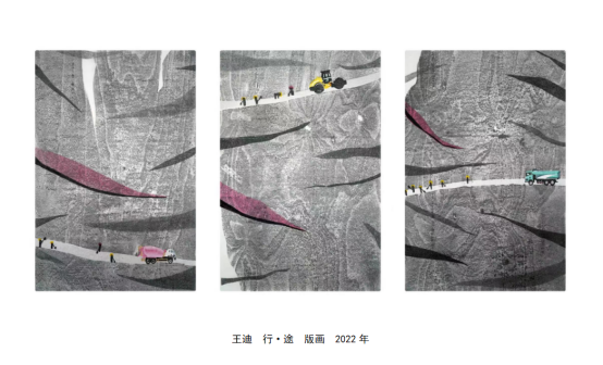 五年一届的全国美术作品展览诞生于新中国成立之际,与共和国发展同行,是目前规模最大、参与范围最广、作品种类最多、最具影响力的国家级综合性美术大展。今年适逢中华人民共和国成立75周年,本届全国美展既是对五年来美术创作成果的一次集中呈现,也是美术界为庆祝新中国成立75周年献上的一份厚礼,得到了广大美术工作者的积极参与和社会各界的广泛关注。陈秀煜的连环画作品《筑梦日记》以超现实主义的形式抒发孩童天真、浪漫、自由自在的思想情怀,在表现形式上,采用了黑白木刻的语言形式,追求一种单纯而质朴,叙事而抒情的艺术风格;王迪的版画作品《行·途》在题材上选择道路工程的修缮等基础设施建设成就,以水印木刻为媒介,传递出人民对美好生活的向往。
