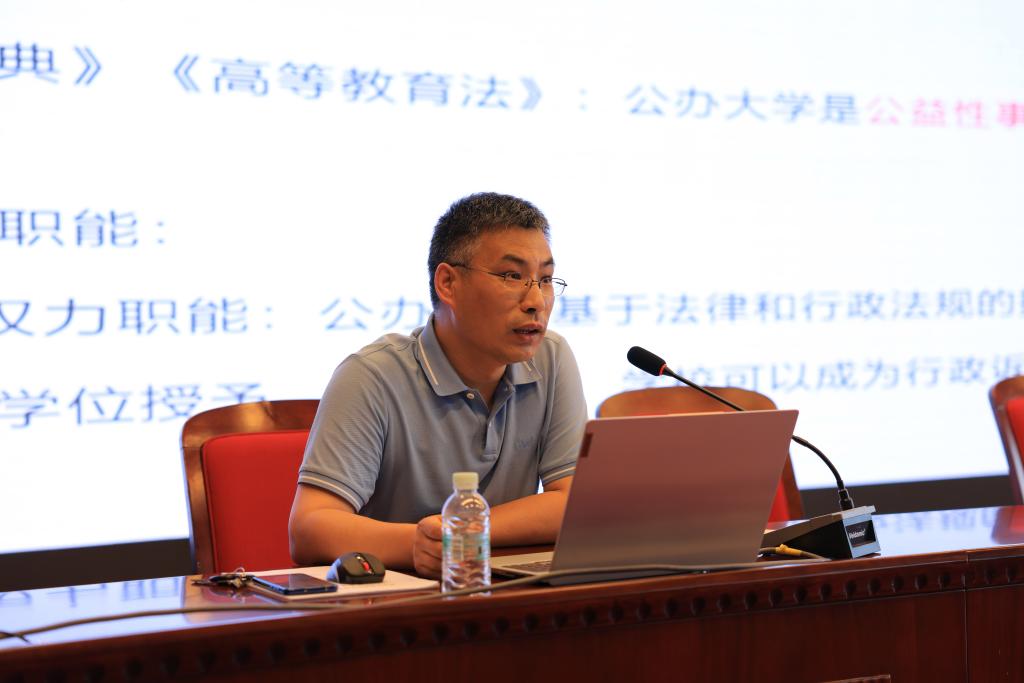 为进一步提升学校依法治校水平,不断推进学校治理体系和治理能力现代化,按照深化能力作风建设“抓基层、打基础、强落实、见实效”活动相关要求,7月10日学校在博雅讲堂举办“处级干部大讲堂”,邀请法学院院长杨铁军对《365英国上市官网章程》进行专题解读。会议由组织部负责人张象林主持,处级以上干部、青年干部特训营、新入职教师、辅导员参加。
