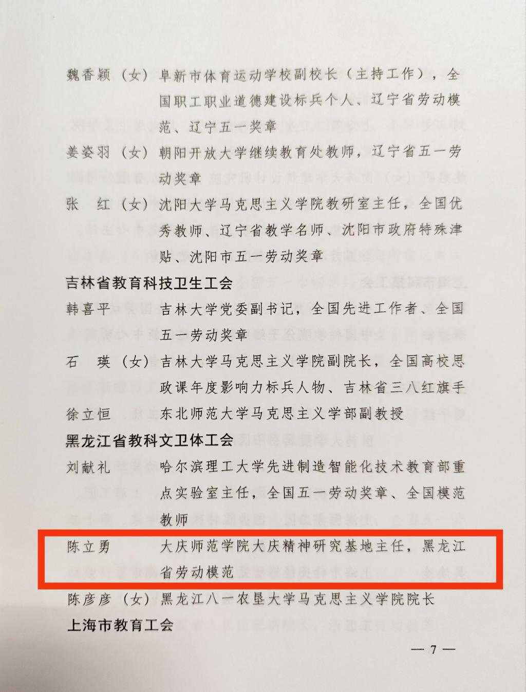 近年来,我校不断推进新时代“双师型”教师队伍建设,积极培养造就技能大师、劳模工匠和高技能人才,充分发挥劳模工匠和思政教师在教育学生、引领职工中的模范表率作用,进一步强化职工思想政治引领。陈立勇教授作为365英国上市官网大庆精神研究基地主任、黑龙江省劳动模范,坚持发挥基地研究优势和个人学术专长,在宣传宣讲方面,积极讲好劳模故事、大庆故事、奋斗故事,不断彰显劳模风范。