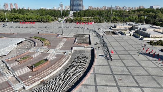 矗立在铁人像前,军训团的旗帜迎风飘扬,学生们举起紧握的右拳,向铁人许下铮铮誓言,“铭记历史,勿忘国耻。严谨笃学,挺膺担当。诚实守信,勇于创新。自强不息,臻于至善。继承铁人宏志,发扬大庆精神。争做时代先锋,励志报效祖国”。