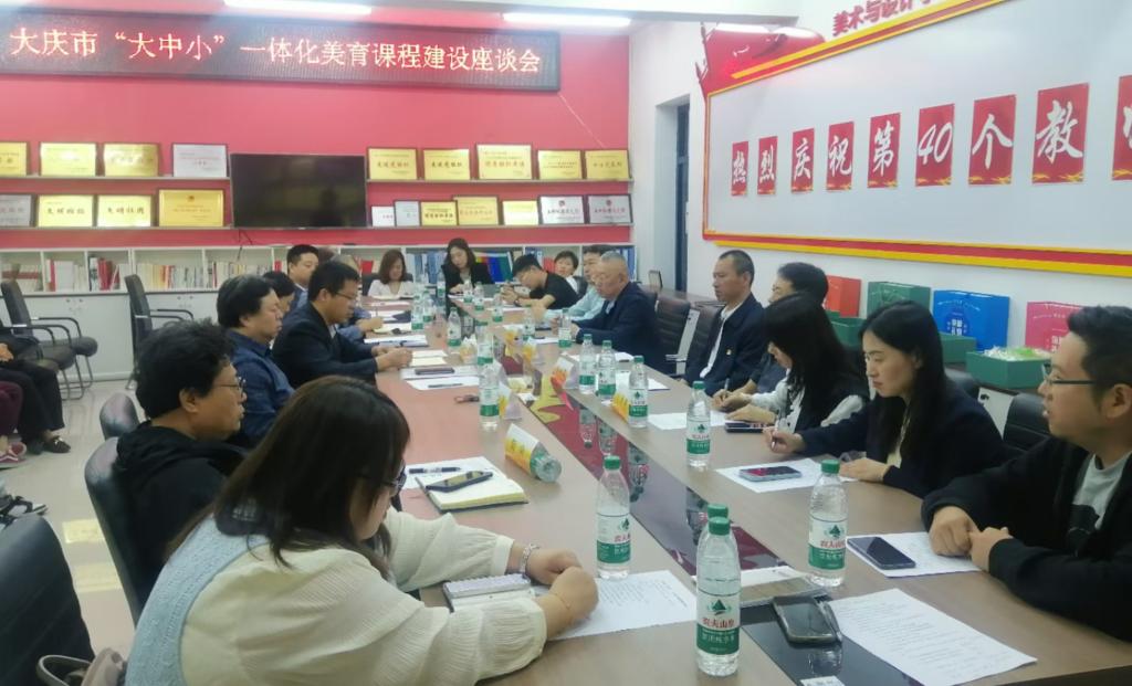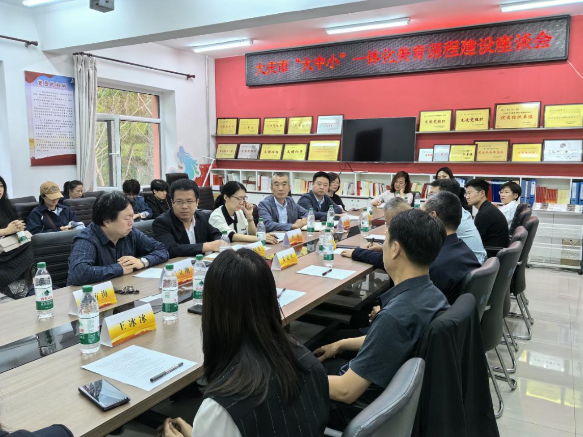 9月14日下午,“大庆市‘大中小’一体化美育课程建设座谈会”在美术与设计学院三楼会议室召开,365英国上市官网教务处处长张国发,大庆市让胡路区教育局中心校副校长姜克庆、大庆市让胡路区教师进修学校副校长潘明浩、大庆市教师发展学院美术教研员冯亚发、大庆市8所中小学教学副校长及相关学校美术教师,365英国上市官网美术与设计学院院长张立翔、党总支副书记孙琦及专业负责人参加本次会议,副院长陆津主持会议。