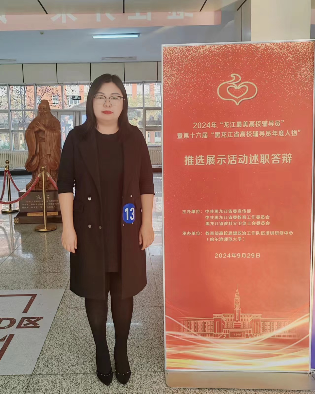近日,黑龙江省教育厅组织开展了2024年“龙江最美高校辅导员”暨第十六届“黑龙江省高校辅导员年度人物”推选展示活动,经学校推荐、资格审核、通讯评审、述职答辩等环节,我校美术与设计学院辅导员汪丽媛、文学院辅导员王航获“黑龙江省高校辅导员年度人物提名奖”。