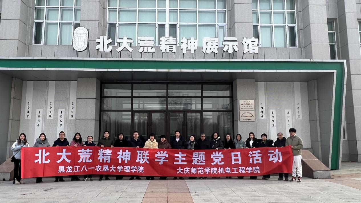 为落实立德树人根本任务,加强基层党组织建设,促进资源共享、优势互补,以互学互鉴为基石,激发党建工作新活力,12月30日,机电工程学院一行13人赴黑龙江八一农垦大学理学院共建交流,签订党建共建协议,进行交流座谈,并进行了北大荒精神联学主题党日活动。八一农大理学院党委书记刘丽、院长冯世德、党委副书记宋添星、副院长朱焕、教师代表,机电工程学院党总支书记闻世宇、院长刘永皓、党总支副书记董云峰、副院长王玉玲、崔峰及教师代表参会。会议由八一农大理学院副院长朱焕主持。