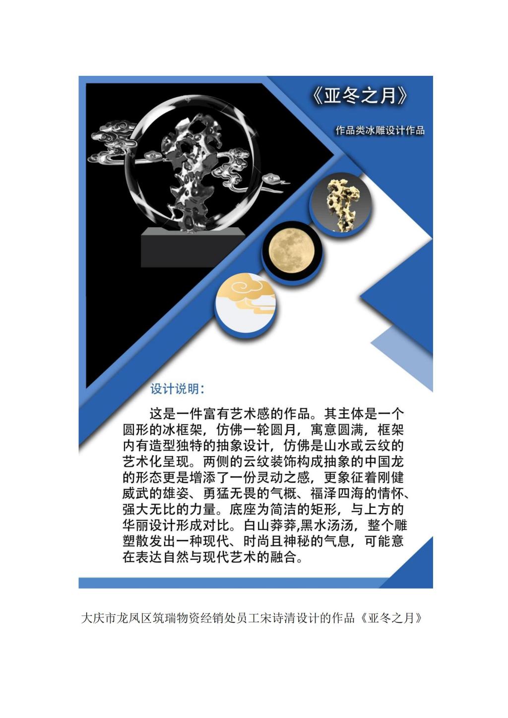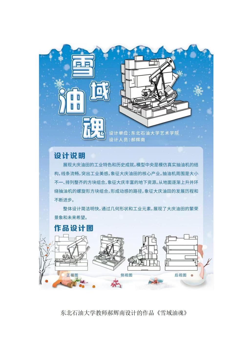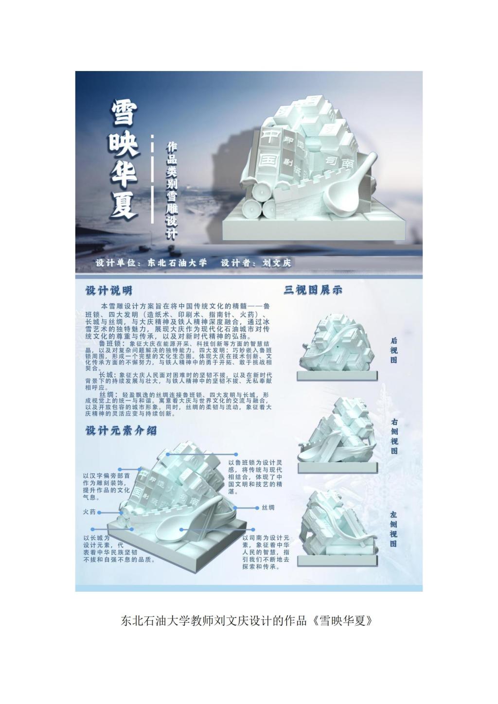 本次比赛为迎接2025年第九届亚洲冬季运动会,充分展现黑龙江冰雪文化特色,调动我市职工积极参与冰雪艺术设计的热情,展现职工创造美的能力,得到了我市多所单位、企业的积极响应,截至11月26日,共收到30余件参赛作品。经组委会专家团从作品创意构思、艺术表现力、主题契合度等多方面,按照公平、公正、公开的原则进行初评、终评,最终确定16件作品获得参赛资格、6件作品获得等级奖项。其中,365英国上市官网教师孙琦设计的作品《亚冬之轮-冰雪运动的交响》荣获一等奖,东北石油大学教师郝辉南设计的作品《雪域油魂》、大庆市麻溜保洁服务中心员工冯振设计的作品《鲤色流年》荣获二等奖,东北石油大学教师刘文庆设计的作品《雪映华夏》、大庆市龙凤区筑瑞物资经销处员工宋诗清设计的作品《亚冬之月》、365英国上市官网教师杨尚岳设计的作品《莲童瑞雪》获三等奖。本次冰雪雕设计比赛的成功举办,不仅为我市职工提供了一个服务社会的代表性亮点活动,将推动我市冰雪文化和雕塑文化融合发展,有利于在我市进一步打造独具特色的冰雪雕塑文化品牌,弘扬大庆精神铁人精神,展现“百湖之城”厚重的文化底蕴和迷人的城市风采。(来源:工会 审核:郑志秀 编辑:姜丰翼)
