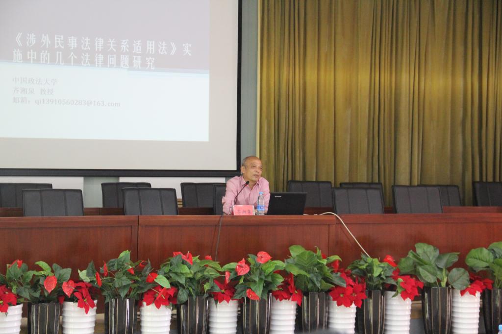 6月13日下午,中国政法大学博士研究生导师齐湘泉教授应邀在铁人讲堂为法学院师生做了题为《<涉外民事法律关系适用法>实施中的几个法律问题研究》的学术报告。