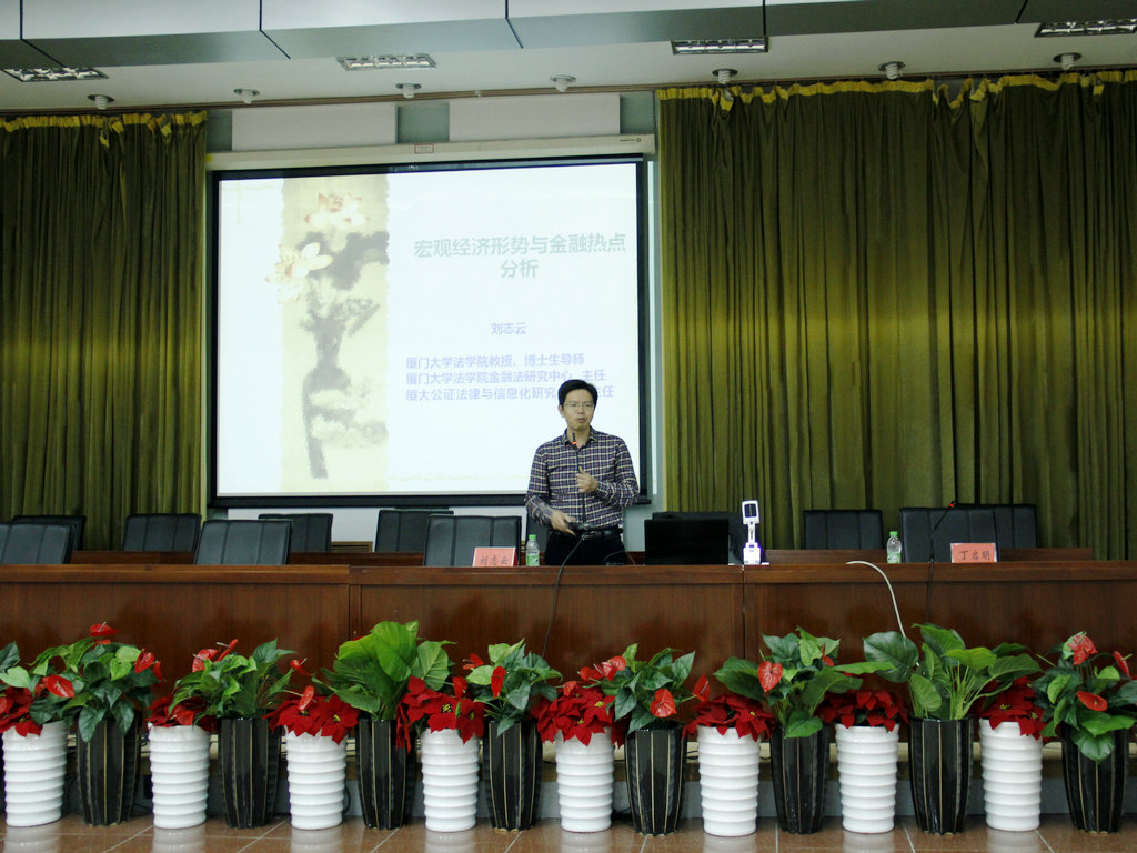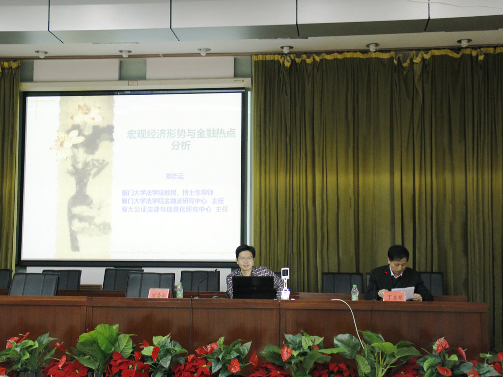 4月15日晚,厦门大学法学院刘志云教授在铁人讲堂为法学院师生作了题为“宏观经济形势与金融热点分析”的学术报告。