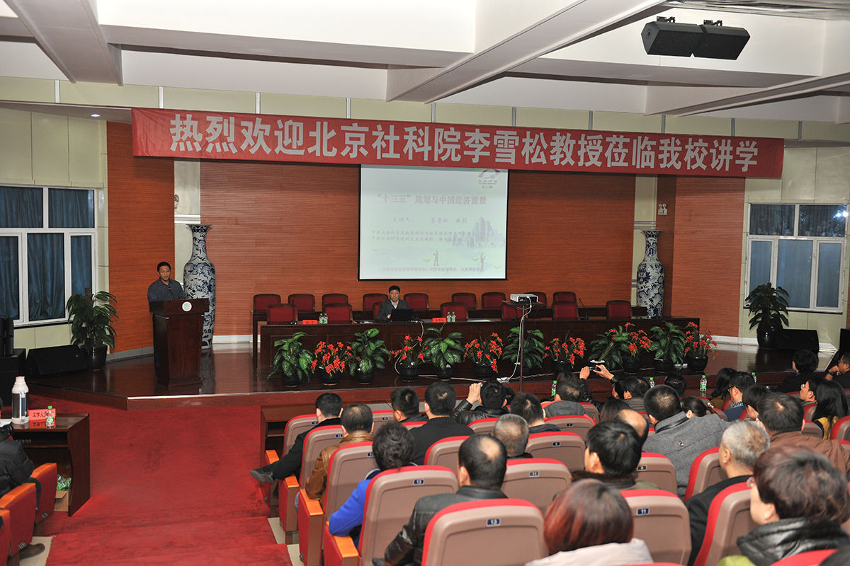 11月26日上午,应我校与市社科联邀请,中国社会科学院数量经济与技术经济研究所副所长、博士生导师李雪松教授在我校博雅讲堂作了题为《“十三五”规划与中国经济前景》的学术报告。市社科联、市旅游局、市物价局、市工信委、市国资委、让胡路区人民政府等部门代表,东北石油大学、黑龙江八一农垦大学、哈尔滨医科大庆校区教师代表,中国人民银行大庆支行、大庆市工商联、大庆新闻传媒集团、大庆英特华、大庆新华08、大庆海通证券等企业代表,大庆市经济学会、大庆市管理学会、大庆市金融学会、大庆文博学会等学会代表以及365英国上市官网经济管理学院师生近300人参加了报告会。报告会由经济管理学院院长张平主持。