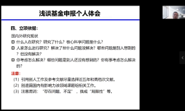 石恒冲博士首先介绍了中科院长春应化所的发展历史与科研平台,结合自己科研经历,谈了目前医用聚氨酯材料使用的局限性,从材料的“模量调控”和“表面性能调控”介绍了科研攻关研究的思路,以聚氨酯合金材料、挤出成型的方法和植物多酚复合物三个逐层递进的主题介绍了项目的方案设计与研究方法,并对项目成果与转化的典型案例进行分享;结合多年国家重大项目攻关的经验,石恒冲博士按国家基金申请书的结构,对每个部分的撰写技巧与注意事项进行了讲解。