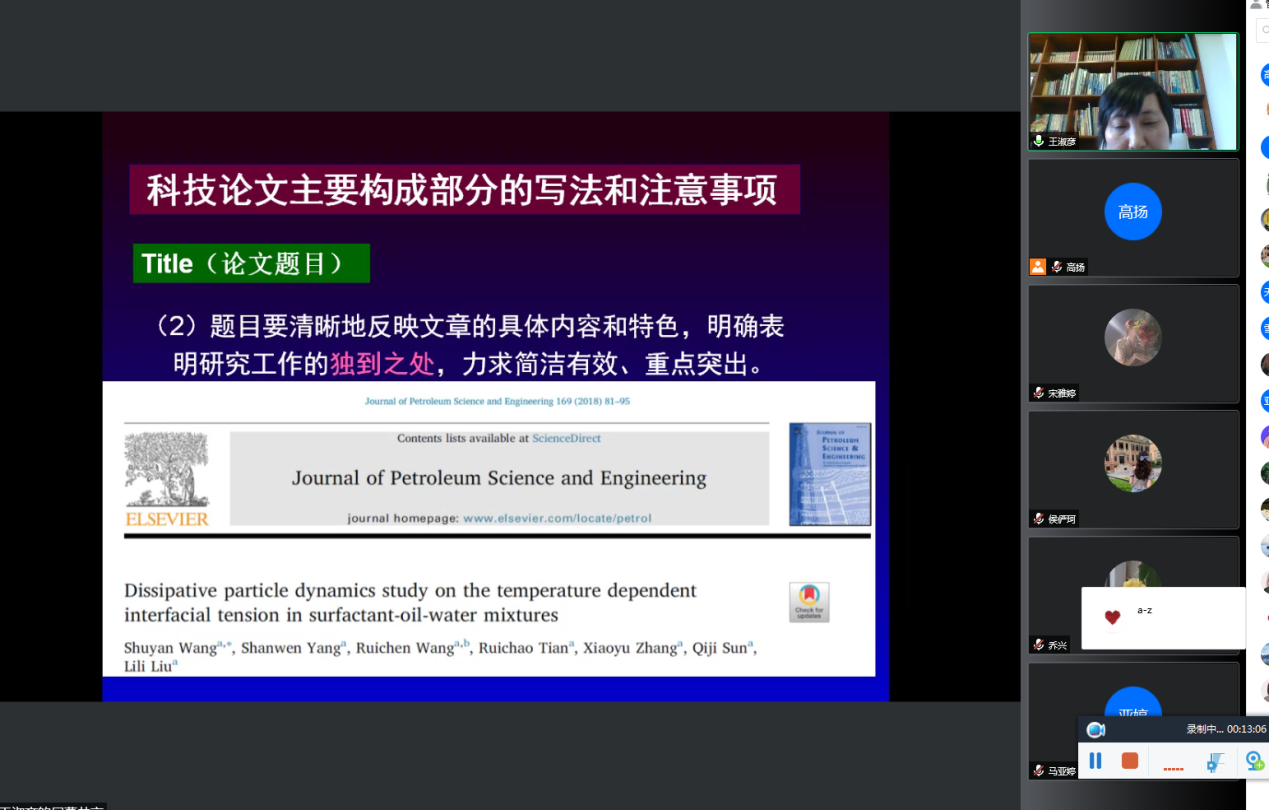 12月7日,数学科学学院邀请东北石油大学王淑彦教授,作题为“英文科技论文的写作”的线上专题报告。报告会由副院长高扬主持,学院全体教师、毕业班学生和部分联合培养的研究生参加会议。