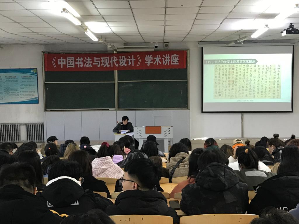 2020年11月4日下午,美术与设计学院邀请伊文琦先生做了题为《中国书法与现代设计》的学术讲座,讲座在主楼1-2教室举行,美术与设计学院部分师生180余人聆听了本次讲座。