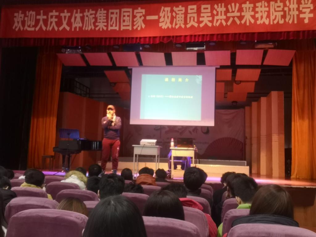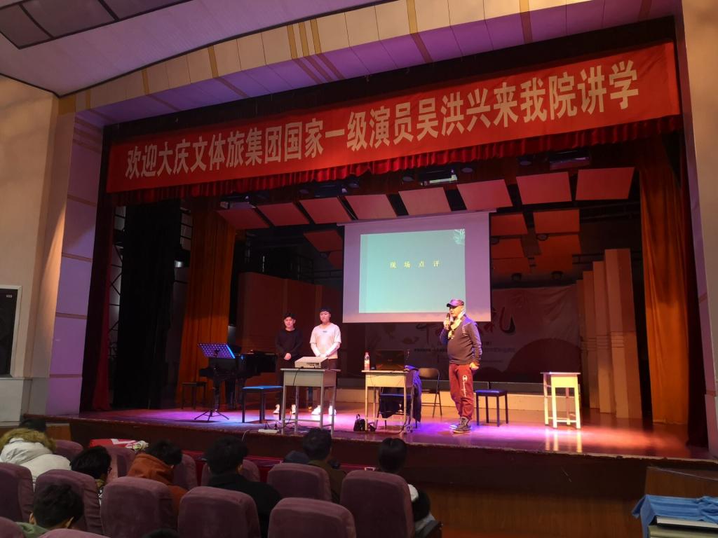 11月6日下午2时30分,大庆市文体旅集团艺术研究创作中心编导、国家一级演员吴洪兴应邀来我院做了题为《舞台表演艺术感染力的展现与提升》的讲座。吴老师从舞台表演中声音的运用、语言的处理、形体的意义、舞台角色的刻画和呈现等几个方面为师生做专题分享和细致讲解。在互动环节,吴老师对音乐表演专业学生表演的话剧《雷雨》小片断和两首独唱给予现场点评、示范指导,讲解到位、声情并茂,深入浅出,赢得在场师生阵阵掌声,对我院学生舞台表演能力的提升起到了积极的作用。